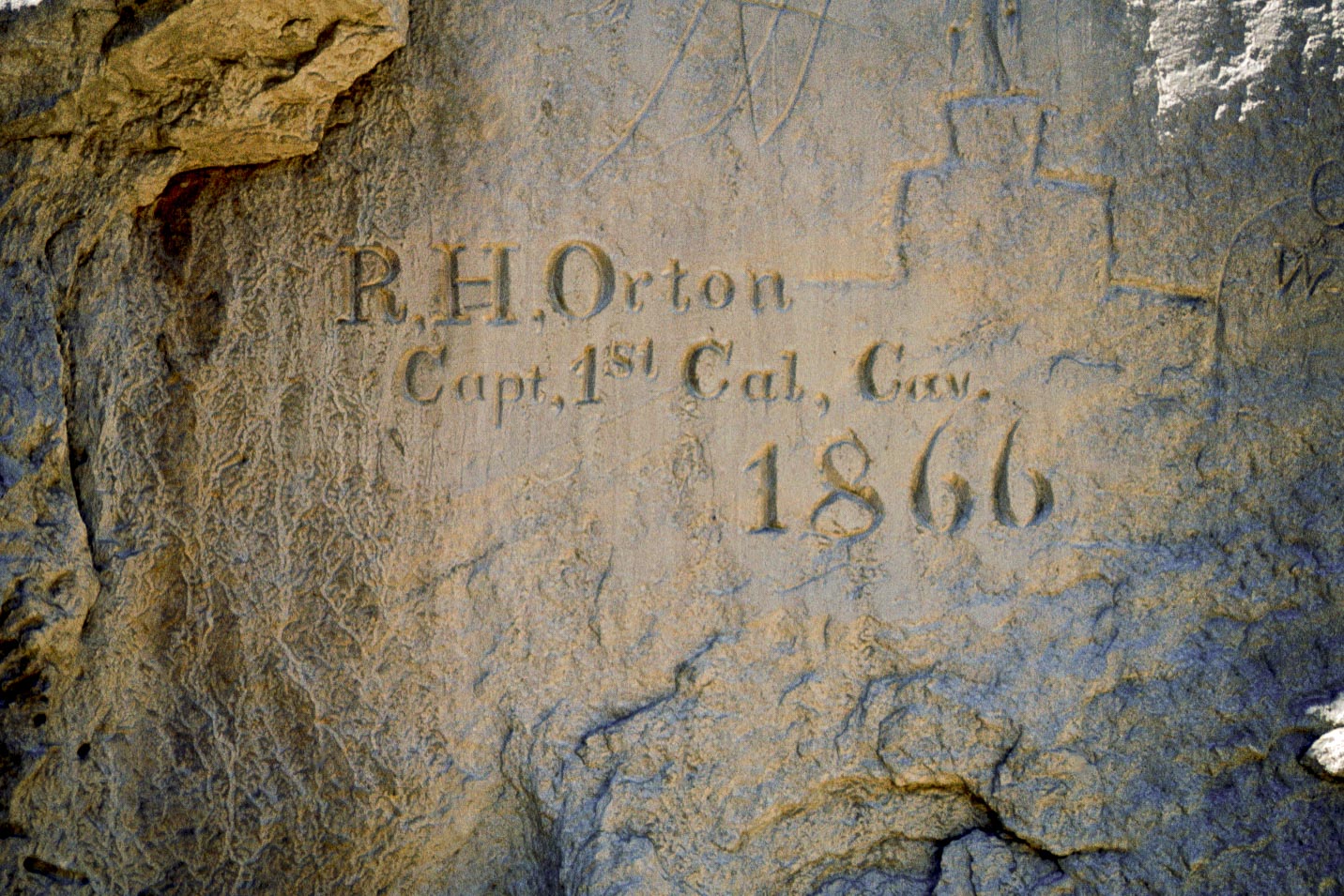 the Beale expedition, are carved into the south side of the rock.