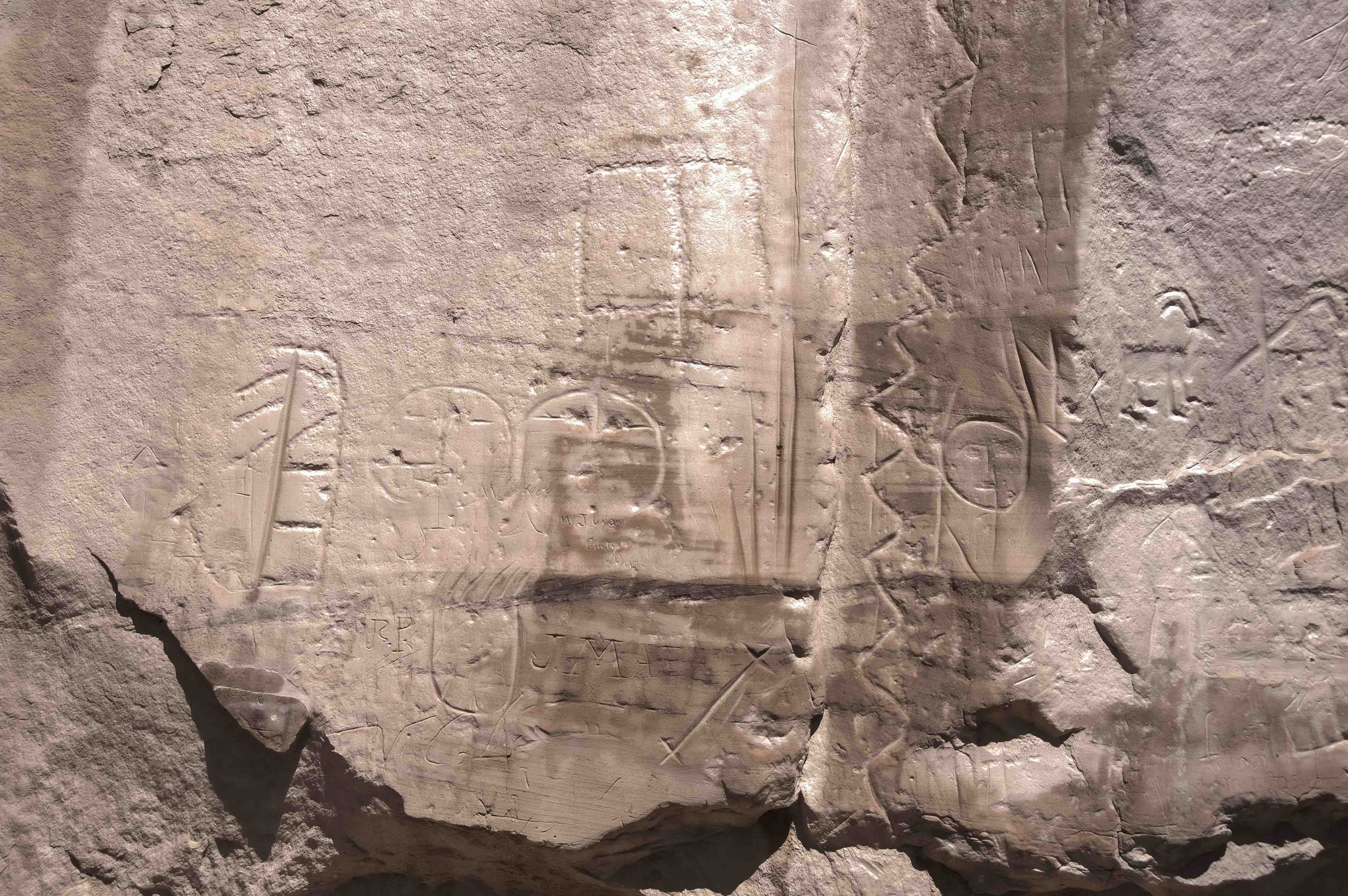 After the petroglyphs, the Spanish inscriptions are the next oldest ones on Inscription Rock.