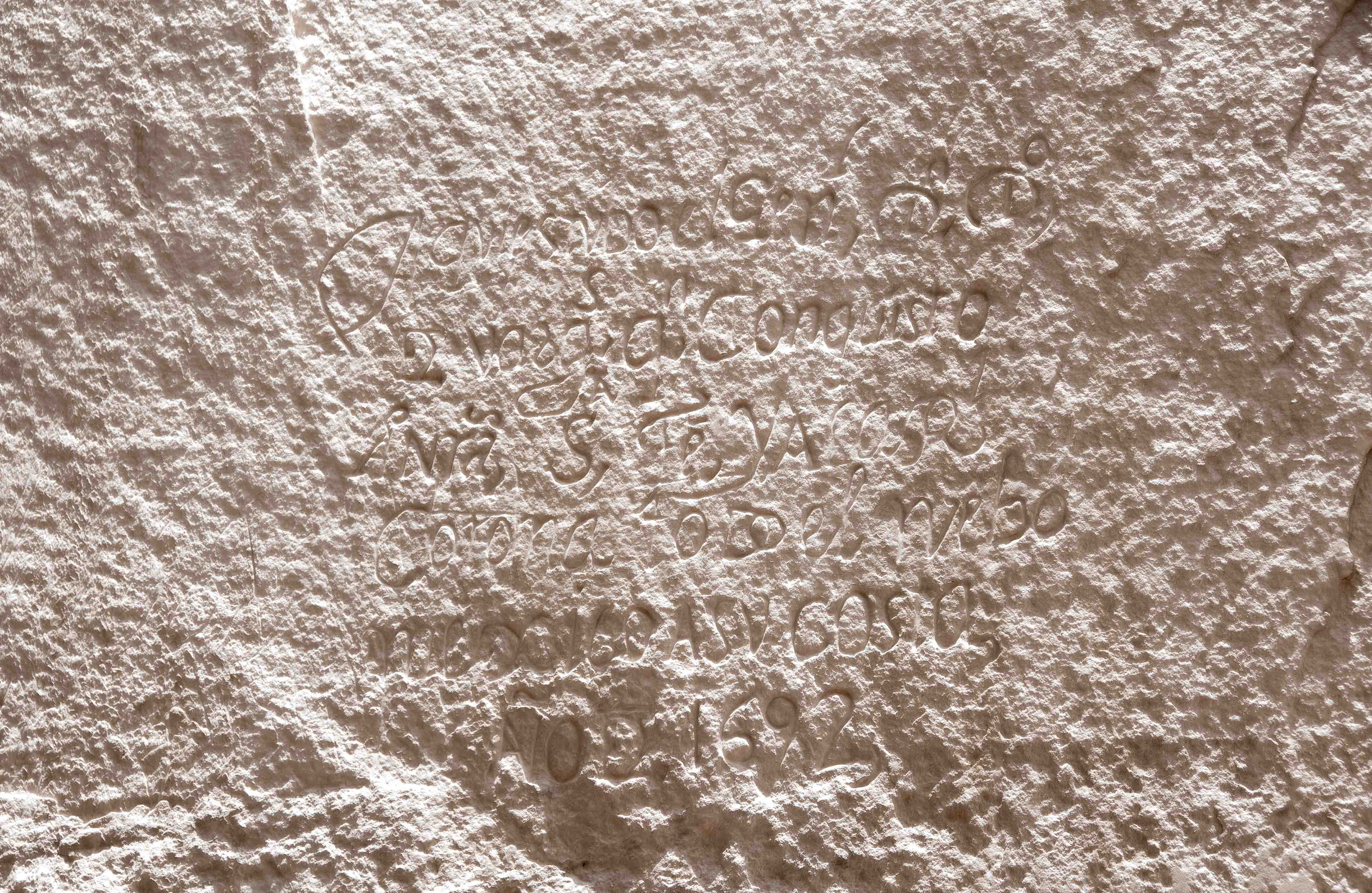 Sergeant Major inscription 1636 - "We, Sergeant Major and Captain Juan de Archuleta and Adjutant Diego Martin Barba and Ensign Agustin de Ynojos passed by here, in the year of 1636"