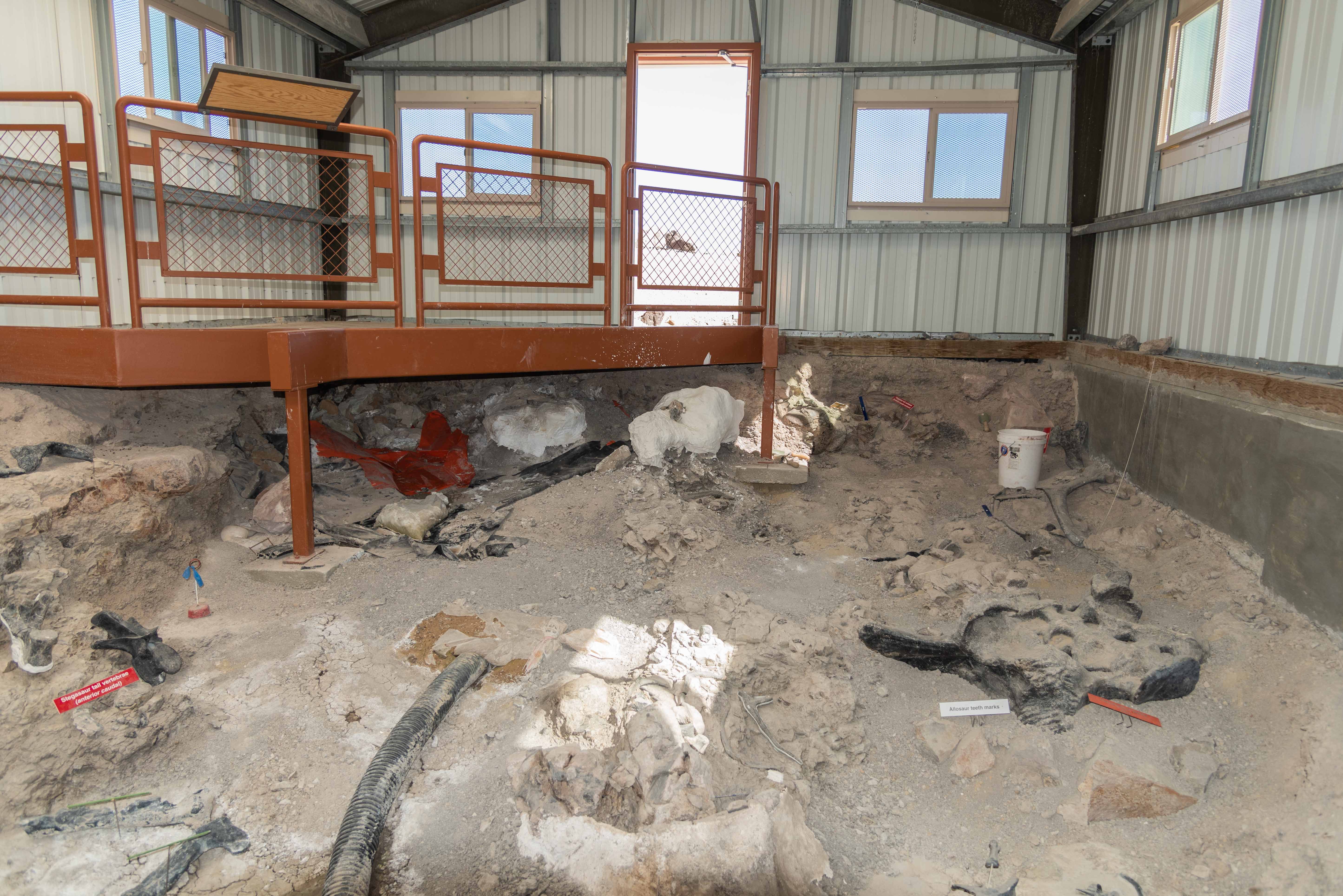 It contains a small museum with displays, casts, and fossils of various dinosuars from the quarry.