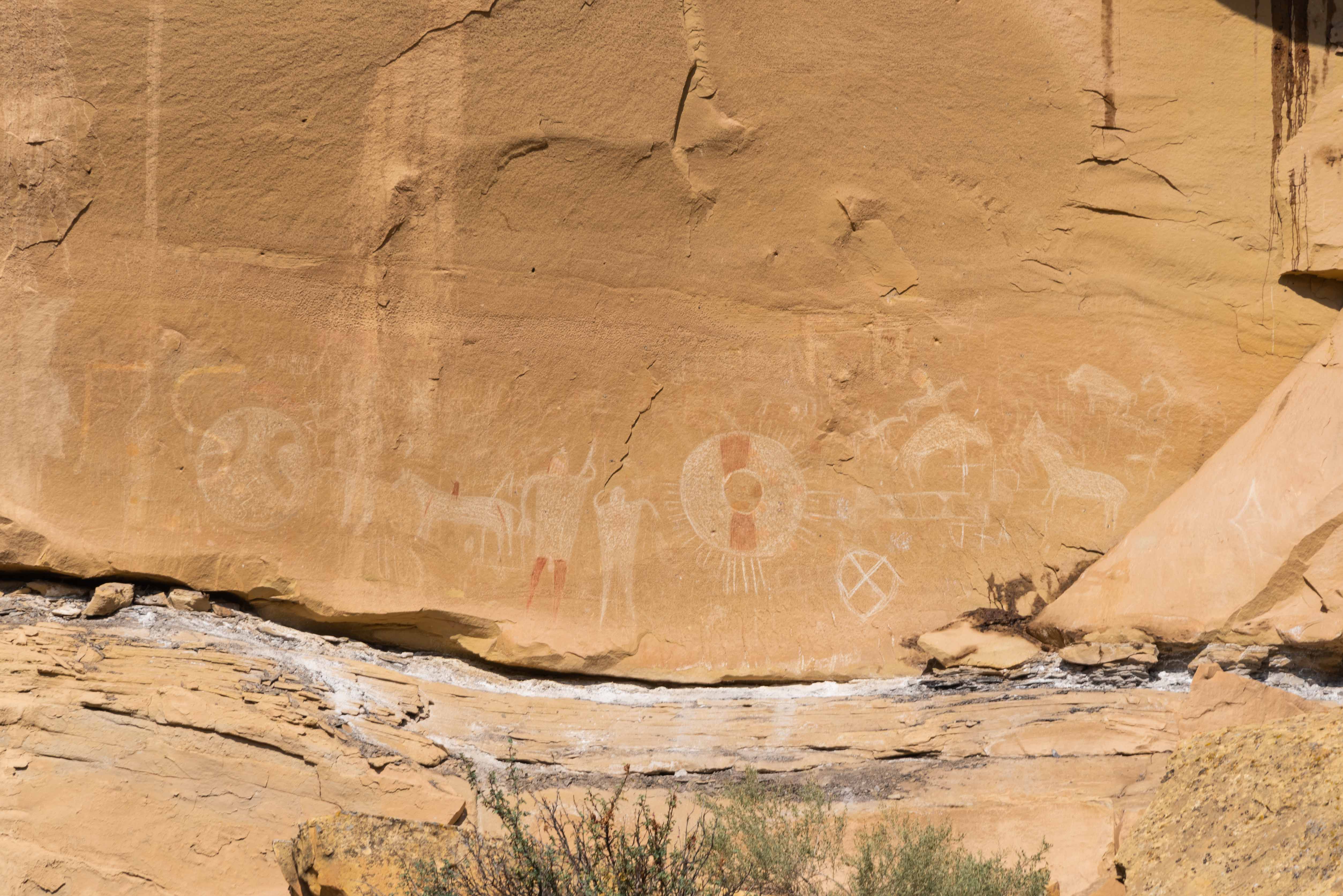 the horses. The panel on the right is a petroglyph (figures pecked into the