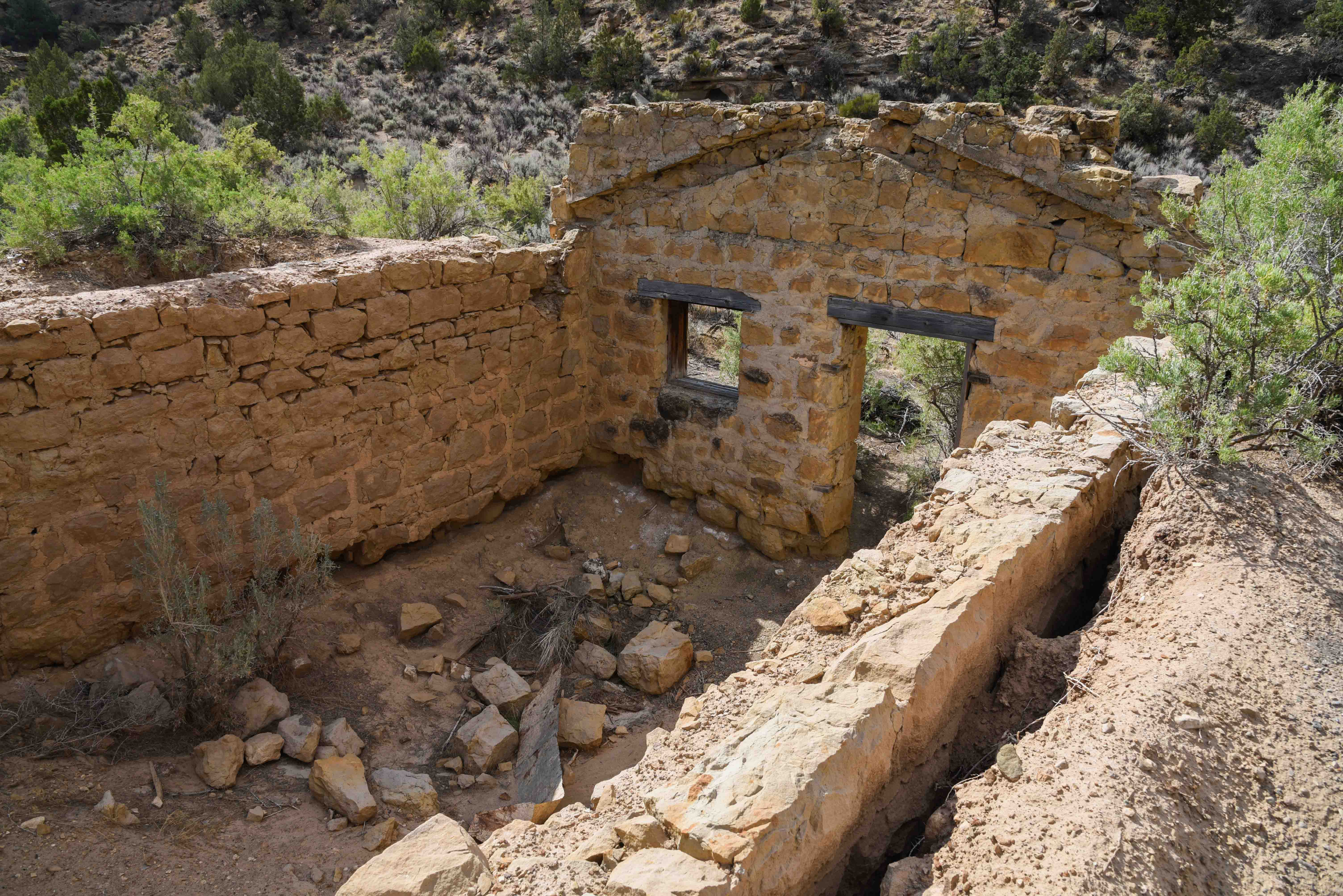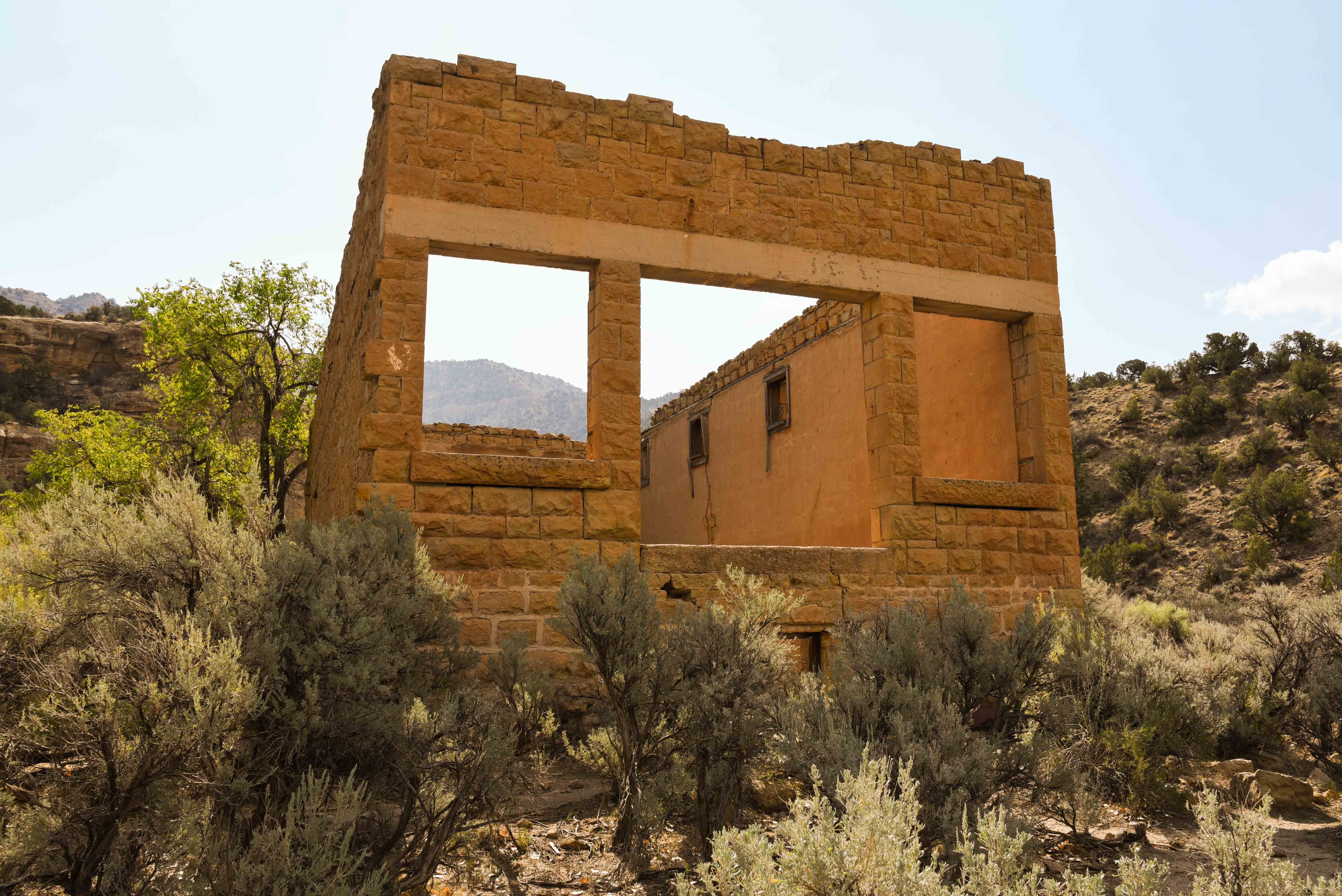 The ghost town of Sego is located in Sego Canyon, about 5 miles north of Thompson Springs. Turn right on to Sego Canyon Road (BLM 160) 0.4 mile north of the Sego Canyon Rock Art. Sego is about 1 mile from the intersection. Sego owed its existence to coal. Harry Ballard discovered the coal and started buying up property around the coal seam. This attracted the attention of E.W. Thompson and the two became partners, forming the Ballard and Thompson Railroad to transport the coal. The railroad ran from Sego, which was originally named Ballard, to Thompson where it connected with the Denver and Rio Grande Western. The mine and much of the surrounding property was purchased by B.F. Bauer and operated as the American Fuel Company starting in 1911. The coal mine operated more or less profitably under various owners from 1911 to 1947. Local coal mining continued into the early 1950s to supply coal to the Denver and Rio Grande Western railroad, but came to an abrupt halt when the railroad switched from coal to diesel. The town officially achieved ghost status in 1955. Many of the town's buildings were moved to Thompson, and fire and flood took the rest. Sego and the surrounding area was listed on the National Register of Historic Places as the Ballard-Sego Coal Mine Historic District in October of 2017.