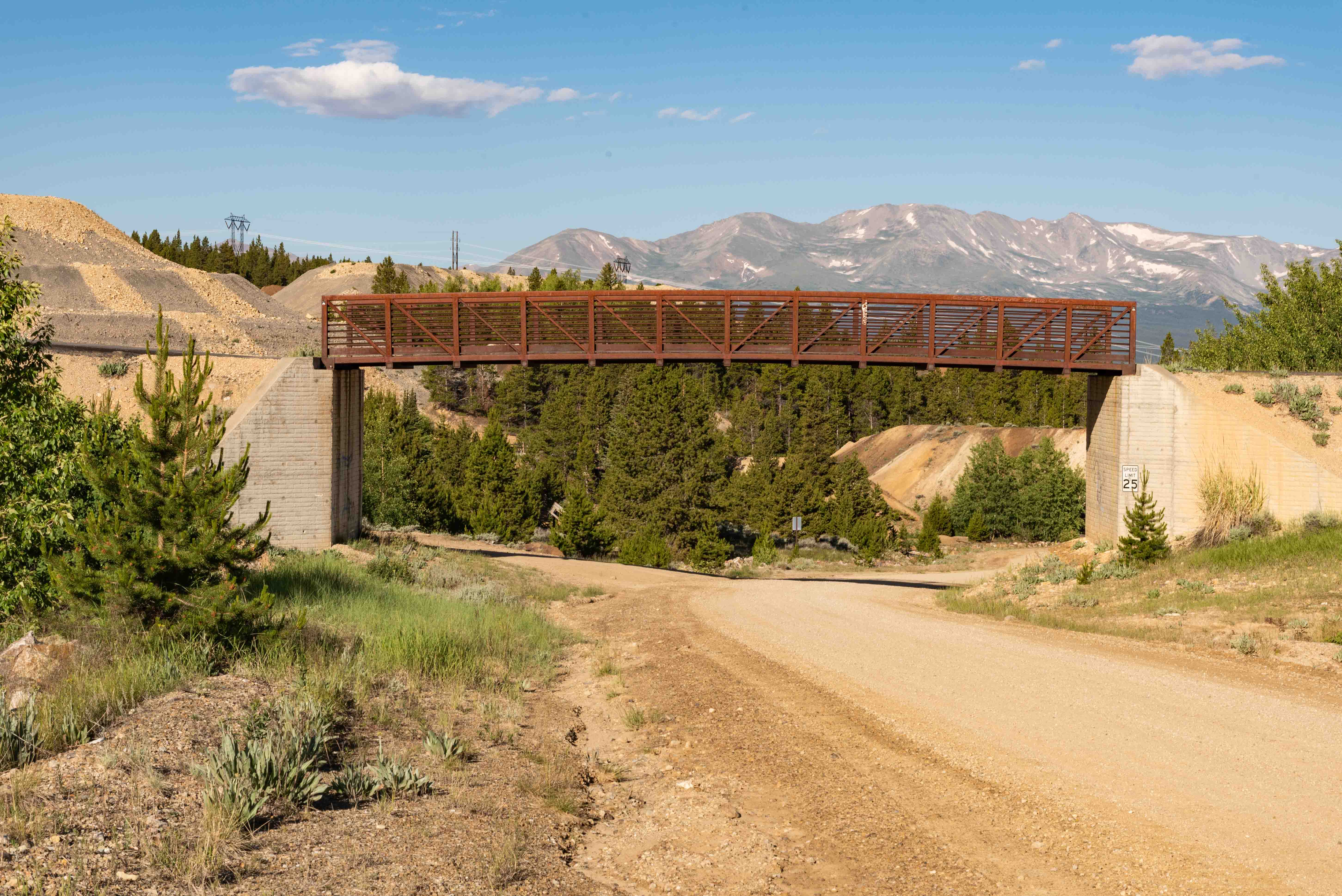 The Mineral Belt Loop Trail was built in 2000 as part of the California Gulch EPA Superfund restoration effort. The trail is an 11.6 mile paved, ADA accessible path that cuts through Leadville on the north, part of the Leadville Mining District on the west, and winds through forest and more old mines on the south and east. The elevation gain from lowest to highest is about 850 ft. The route was designated a National Recreation Trail in 2002. The trail is great for hiking and biking in the summer, and cross country skiing and shoeshoeing in the winter. Pets are permited on leash. Motorized vehicles are not permitted, neither on or off leash.